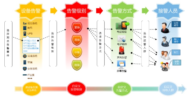 6、集中告警,及時發現異常情況,告警信息直接在顯示屏上彈出,第一時間通知管理人員,節省告警時間,同時淘汰落后的維護方式,讓巡檢工作效率更高、機房安全系數提升,減少很多風險。