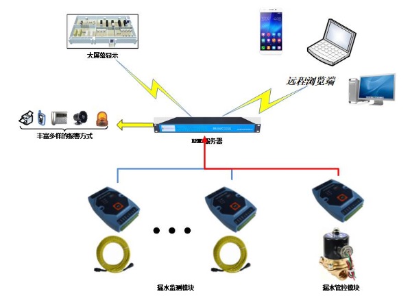 【應(yīng)用領(lǐng)域】 1)機(jī)房漏水檢測(cè):可檢測(cè)機(jī)房地板、天花板、墻體、門窗、精密空調(diào)、普通空調(diào)、用水管道、消防管道、任意設(shè)備漏液等存在的漏水隱患。 2)智能樓宇漏水檢測(cè):漏水檢測(cè)系統(tǒng)是樓宇自控系統(tǒng)的重要子系統(tǒng)之一,可檢測(cè)樓宇內(nèi)管道(供暖供冷輸水管、生活用水、消防用水管道等)、樓頂、中央空調(diào)、地下車庫(kù)等地的漏水隱患。 3)倉(cāng)庫(kù)漏水檢測(cè):倉(cāng)庫(kù)區(qū)域內(nèi)存放著大量的貨物,為確保貨物正常儲(chǔ)存,通過(guò)漏水檢測(cè)系統(tǒng)可避免雨水或其他液體的浸泡。 4)檔案室漏水檢測(cè):可檢測(cè)檔案室內(nèi)天花板、墻體、地暖、門窗、用水管道的漏水隱患,從而取保檔案室內(nèi)檔案、文件的干燥,延長(zhǎng)保存期限。 5)電站漏水檢測(cè):電力配電室嚴(yán)禁與液體接觸,為維護(hù)電力的正常配送電運(yùn)行,在配電室需加裝水浸傳感器,預(yù)防水泄漏帶來(lái)的嚴(yán)重危害。