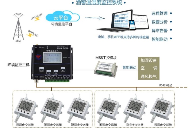 酒是一種易燃易爆易揮發的液體,對于存放的環境要求極高。其中溫濕度對于酒的存放有著嚴格的要求。溫濕度將直接影響酒的質量以及安全,因此我么需要酒庫溫濕度監控系統來保證酒庫的溫度與濕度維持在適合的條件下。 一、酒庫溫濕度監控系統的功能 (1)采集功能:采集是溫濕度監控系統的基本功能,通過無線通訊模塊與和無線溫濕度模塊連接實現酒庫溫濕度采集。 (2)監控功能:酒庫溫濕度監控系統不僅采集溫、濕度數據,還對酒庫溫、濕度進行實時監控,一旦溫濕度出現異常,立刻發出告警信息,保證溫濕度維持在恒定范圍內。 (3)數據管理:可對采集的數據進行儲存、記錄、分析、查詢、打印、轉載等。如,可同時對酒庫的某一區域的運行數據在歷史一段時間內的變化趨勢進行分析,分析方式可通過曲線、圖標、棒圖/餅圖等。 (4)聯動控制:在酒庫溫濕度監測系統中,一旦溫濕度超限,系統會第一時間啟動聯動控制功能,監控主機發送聯動命令,主機通過工控模塊智能開啟空調、加濕器、除濕器、新風機等設備對溫、濕度進行調整,待酒庫內溫濕度恢復正常值時,將自動關閉相關設備。 (5)分級權限:具備多級管理權限功能,設置不同組別,通過授權擁有不同操作權限,低級別權限不得越級操作,同時還支持添加賬號等功能。