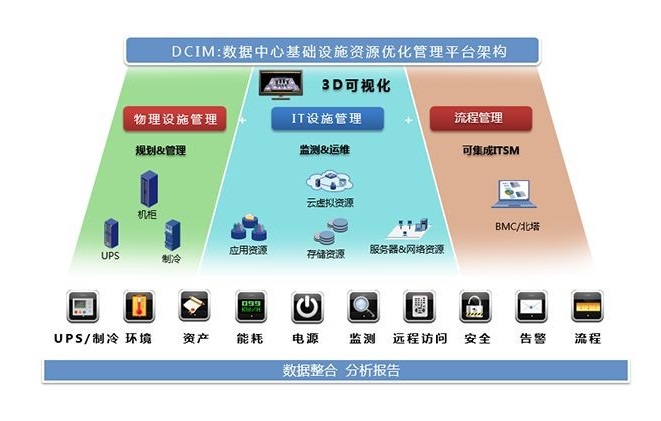 所謂的DCIM管理系統指的是將IT(信息技術)和設備管理結合起來,并通過軟件、硬件和傳感器等設備,對數據中心關鍵設備進行集中監控、集中管理、容量規劃等的系統。DCIM管理系統的主要功能包括: 一、數據監測 DCIM管理系統可以提供自動搜尋IT資產的功能,收集重要數據,以便加快實施,并隨時更新資產記錄,從而幫助管理人員進行有效的管理。 二、資產管理 資產管理是任何數據中心運營中最重要的問題,DCIM管理系統具備資產管理功能,幫助數據中心提高資產管理質量和效率,保證數據中心設備的可靠性。 三、管理報告 DCIM管理系統支持實時收集電力和環境衡量標準等所需的數據,可以提供商業智能工具,將該信息交給管理人員審閱。 四、能耗管理 機房信息管理、用電量分項管理、設備參數管理、用戶操作日志等,提供機房能耗總量視圖,能直觀清晰了解機房重要能耗指標,幫助用戶梳理機房能耗數據。 五、建模預測 為了有效地管理資產,DCIM管理系統會提供數據中心建模功能,建立復雜的假設場景,以便在實際動作進行之前,了解移動、增添和變化方面的任何項目會如何影響數據中心的電力、制冷和場地。 六、服務器管理 DCIM管理系統準確記錄服務器/交換機/機柜/機房等信息和信息關聯綁定,實現快捷的設備尋找,管理和分配。 七、報警管理 數據中心所有監控子系統通過DCIM綜合管理平臺統一集中監控和管理。當各子系統發生異常可及時通過電話、短信、聲光、E-mail、微信等多種報警方式通知相關管理人員及時處理。 八、報表管理 通過靈活可配置的可視化報表,管理人員、業務人員和運維人員可以根據自我個性化需求對報表展現頁面、數據來源、數據范圍等進行自定義并生成報表,報表可按曲線、柱狀圖、餅圖、表格的形式展示。 九、能耗分析 DCIM管理系統可提供如當前PUE指標及日、周、月、年PUE指標數據分析(其他指標如WUE/CUE/PLF/CLF等);不同類別設備的電量用能指標數據分析;同類設備的電量用能同期/上月/上年指標數據分析等分析結果。 總之,DCIM管理系統可以協助數據中心管理人員準確、快速的了解設備運行及狀態、能源、空間、指令等關鍵參數及情況,方便管理人員及時調配資源進行匹配,提高資源使用率及提高基礎設施可用性,從而降低運營成本。
