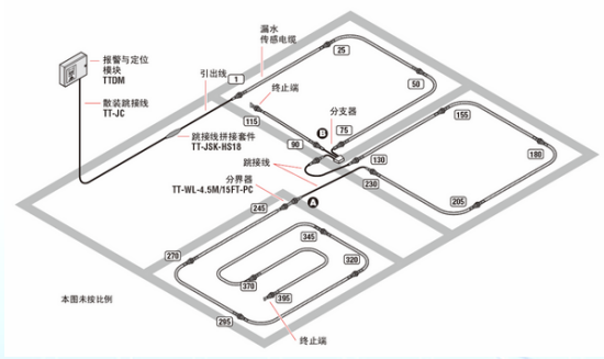 漏水報警系統工作是基于漏水控制器檢測式原理,其動作原理是當發生泄漏時,液體碰觸到漏水傳感器或漏水感應線導致回路電阻的變化,漏水控制器將電阻的變化值轉換成電流電壓值,從而驅動報警電路和繼電器電路激活報警。